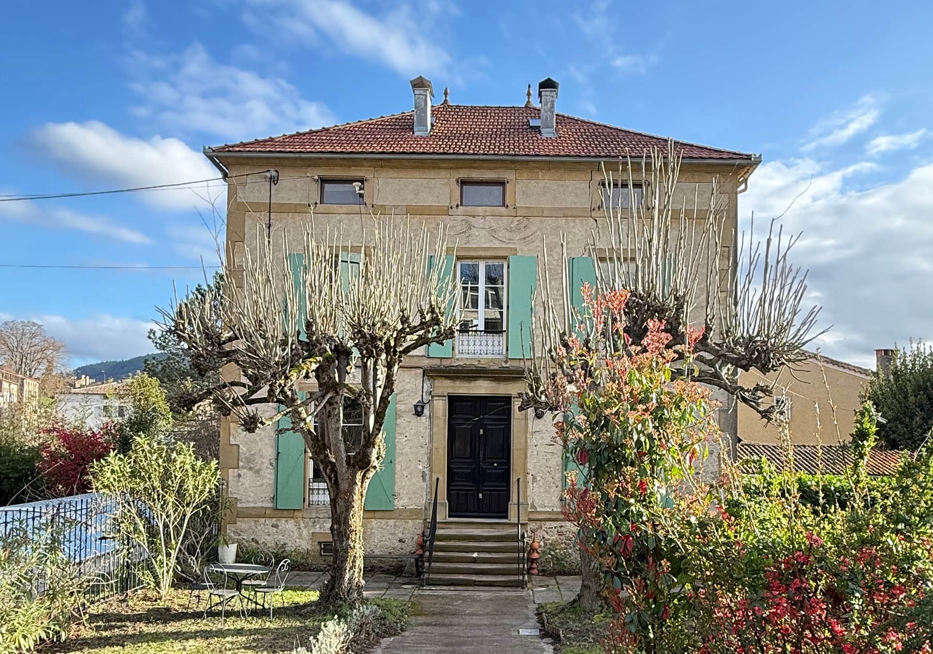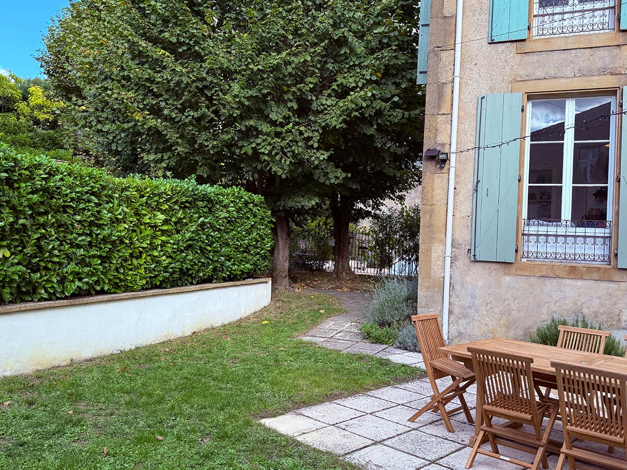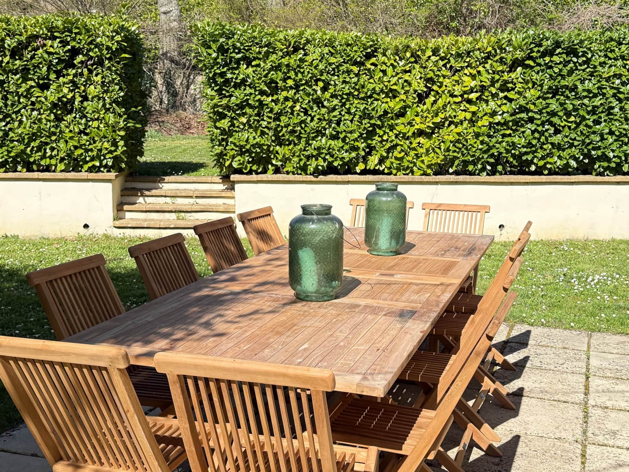 The 5mx10m heated (heat pump) pool is to the left of the house and is separated from the main garden by metal railings. It features a cover that provides additional safety and helps to keep the pool clean. There is a patio area in front of the pool ideal for sunbeds.